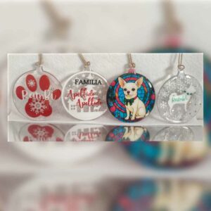 PACK DE 4 COLGANTES NAVIDEÑOS PERSONALIZADOS CON NOMBRE, SILUETA Y DIBUJO DE TU MASCOTA.